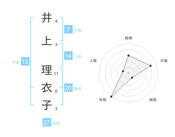 井上 理衣子さんの総格は27画の3点!