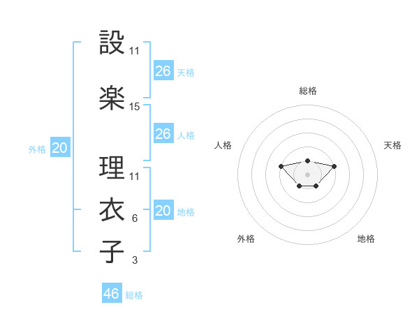 設楽 理衣子さんを姓名の画数から五運を鑑定