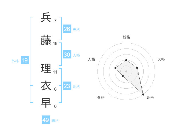 兵藤 理衣早さんの総格は49画の2点!