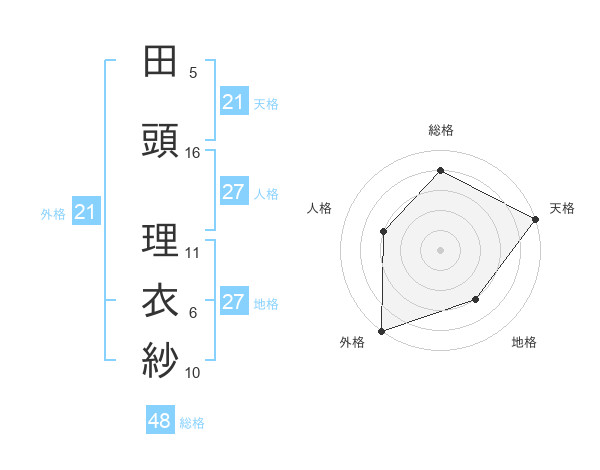 田頭 理衣紗さんを姓名の画数から五運を鑑定