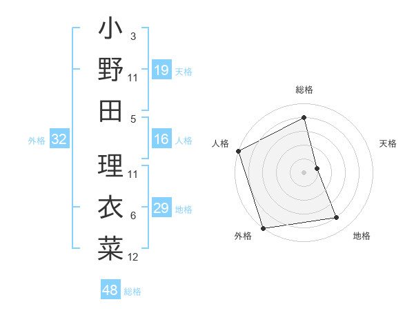 小野田 理衣菜さんを姓名の画数から五運を鑑定