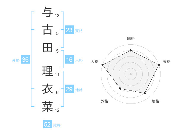与古田 理衣菜さんを姓名の画数から五運を鑑定