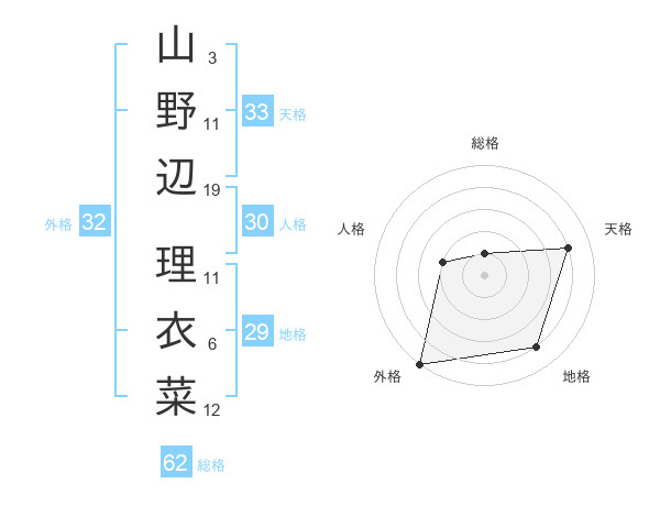 山野辺 理衣菜さんの天格は33画の4点!