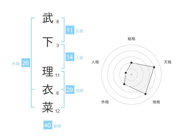 武下 理衣菜さんの総格は40画の2点!