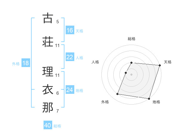 古荘 理衣那さんを姓名の画数から五運を鑑定