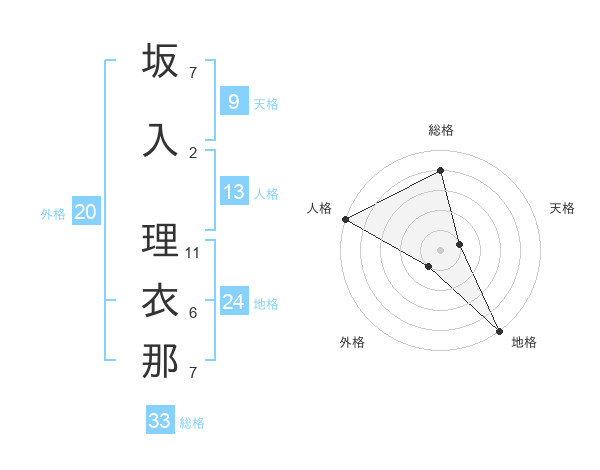 坂入 理衣那さんの地格は24画の5点!