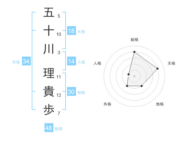 五十川 理貴歩さんの総格は48画の4点!
