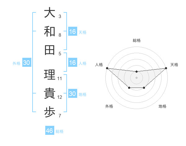 大和田 理貴歩さんを姓名の画数から五運を鑑定