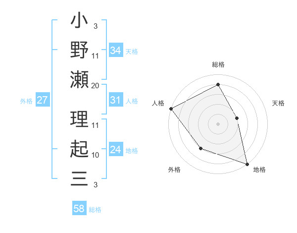 小野瀬 理起三さんを姓名の画数から五運を鑑定