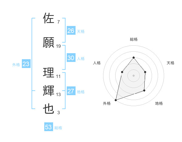 佐願 理輝也さんを姓名の画数から五運を鑑定