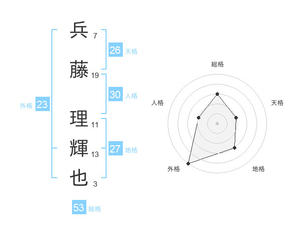 兵藤 理輝也さんの総格は53画の3点!