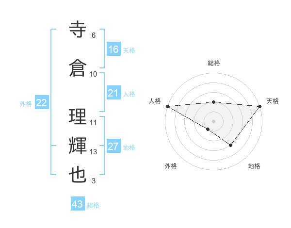 寺倉 理輝也さんの総格は43画の2点!