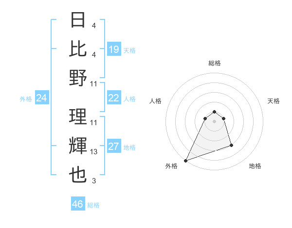 日比野 理輝也さんを姓名の画数から五運を鑑定