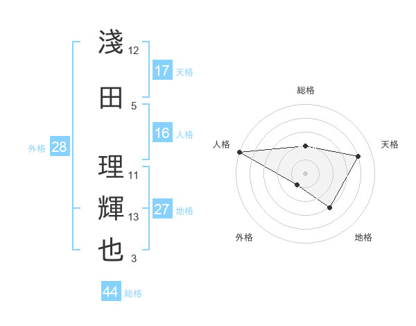 淺田 理輝也さんを姓名の画数から五運を鑑定