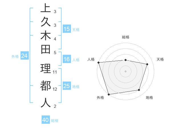 上久木田 理都人さんを姓名の画数から五運を鑑定