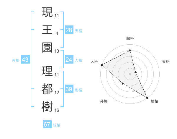 現王園 理都樹さんの総格は67画の4点!