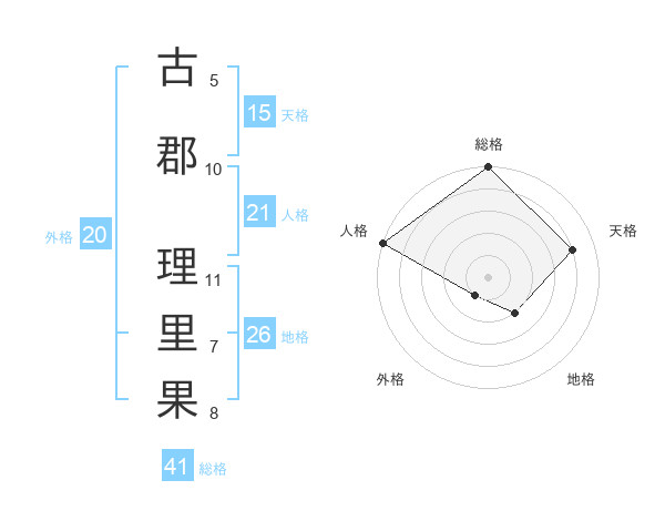 古郡 理里果さんを姓名の画数から五運を鑑定