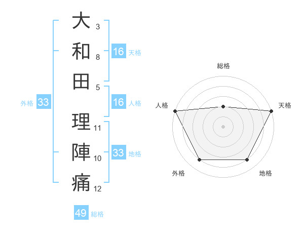 大和田 理陣痛さんを姓名の画数から五運を鑑定