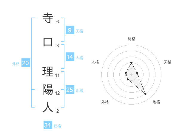 寺口 理陽人さんを姓名の画数から五運を鑑定