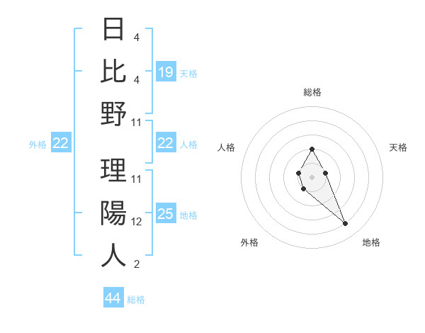 日比野 理陽人さんの総格は44画の2点!