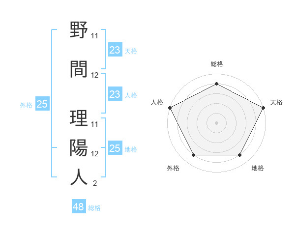 野間 理陽人さんを姓名の画数から五運を鑑定