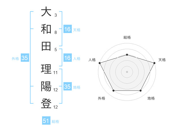 大和田 理陽登さんを姓名の画数から五運を鑑定