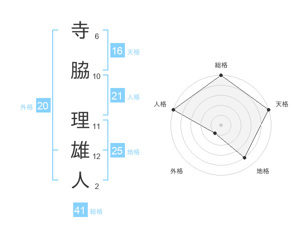 寺脇 理雄人さんを姓名の画数から五運を鑑定