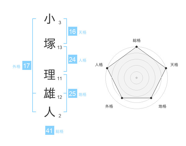小塚 理雄人さんの総格は41画の5点!