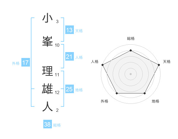 小峯 理雄人さんの天格は13画の5点!