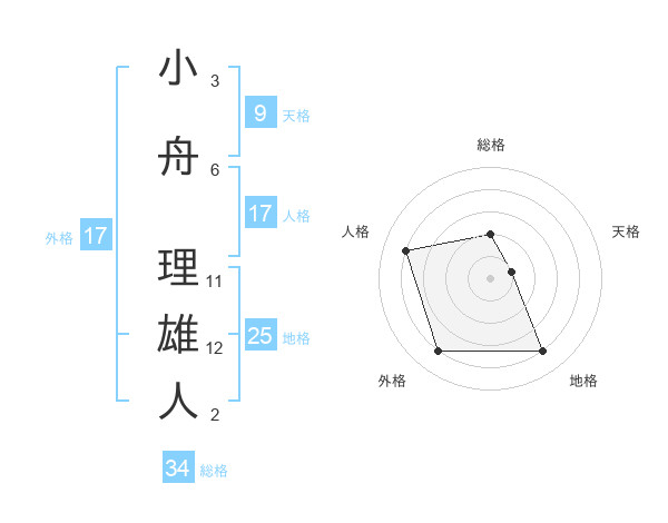 小舟 理雄人さんを姓名の画数から五運を鑑定