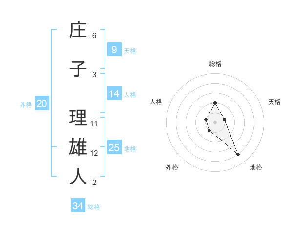 庄子 理雄人さんを姓名の画数から五運を鑑定