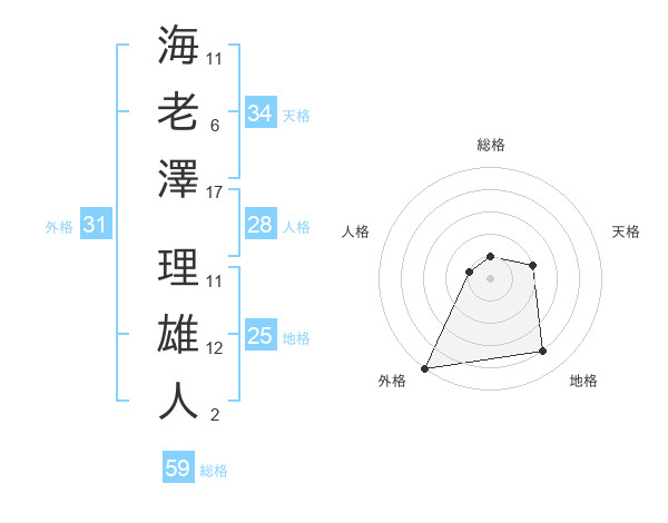 海老澤 理雄人さんを姓名の画数から五運を鑑定
