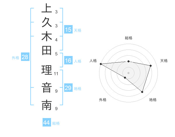 上久木田 理音南さんの総格は44画の2点!
