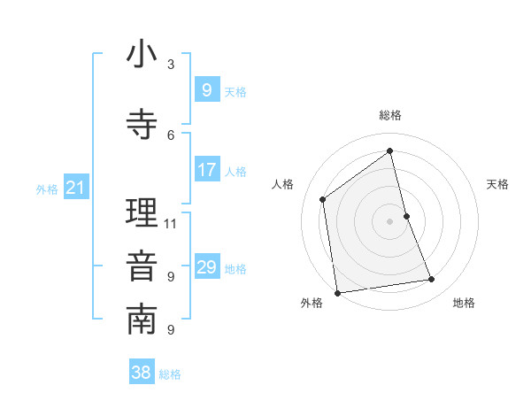 小寺 理音南さんの総格は38画の4点!