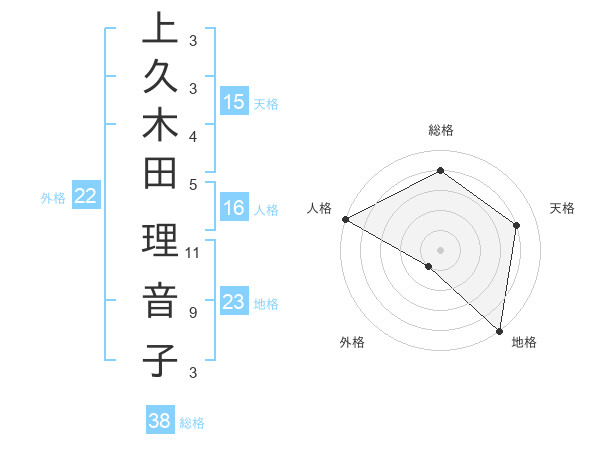 上久木田 理音子さんを姓名の画数から五運を鑑定