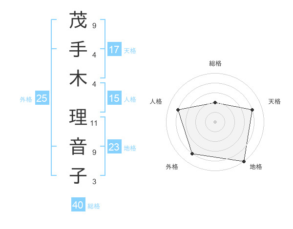 茂手木 理音子さんを姓名の画数から五運を鑑定