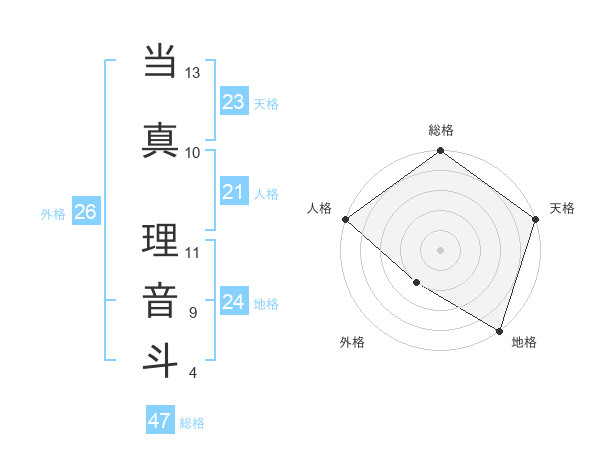 当真 理音斗さんを姓名の画数から五運を鑑定