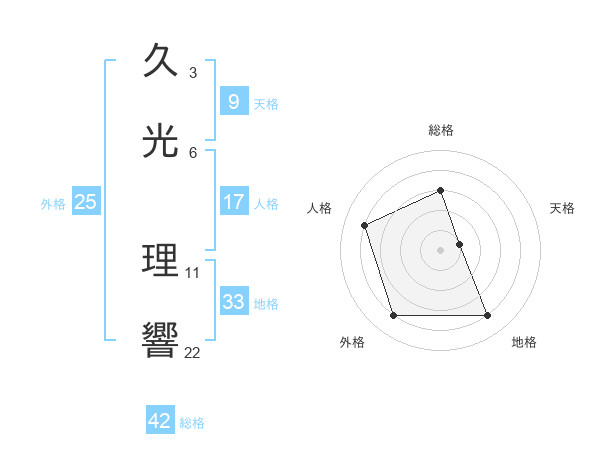 久光 理響さんの総格は42画の3点!