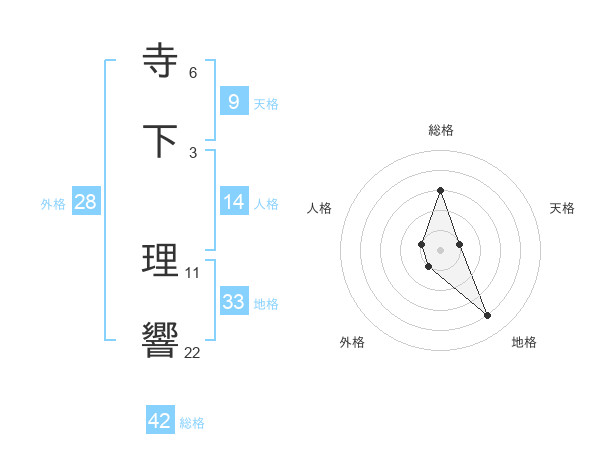 寺下 理響さんの総格は42画の3点!