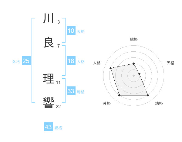 川良 理響さんの総格は43画の2点!