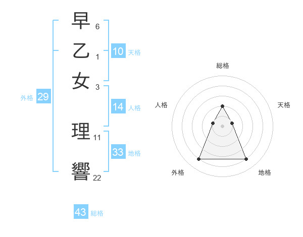 早乙女 理響さんを姓名の画数から五運を鑑定