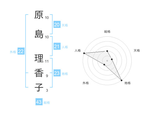 原島 理香子さんの総格は43画の2点!