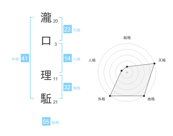 瀧口 理駈さんを姓名の画数から五運を鑑定