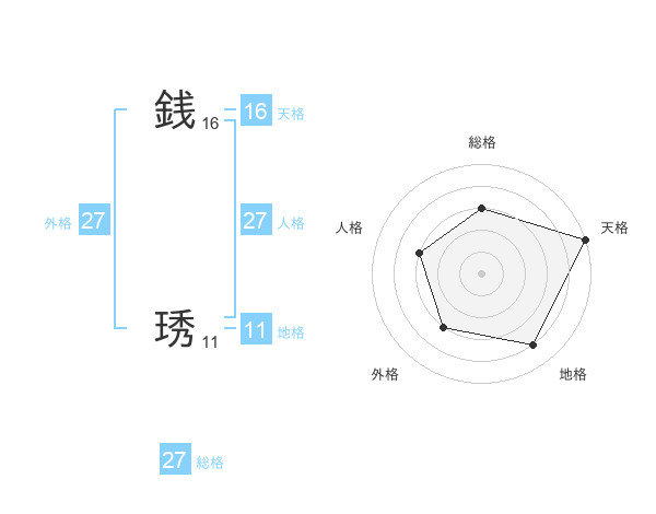 銭 琇さんの総格は27画の3点!