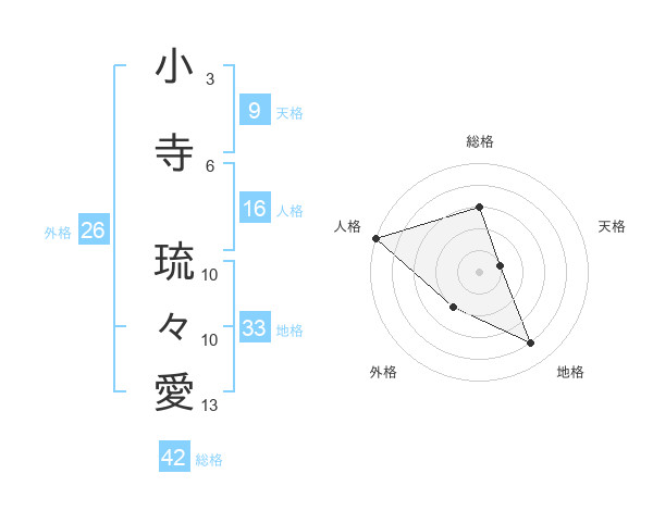 小寺 琉々愛さんを姓名の画数から五運を鑑定