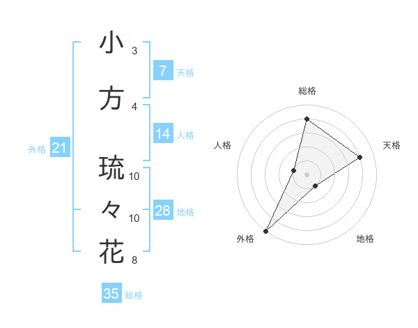 小方 琉々花さんの総格は35画の4点!