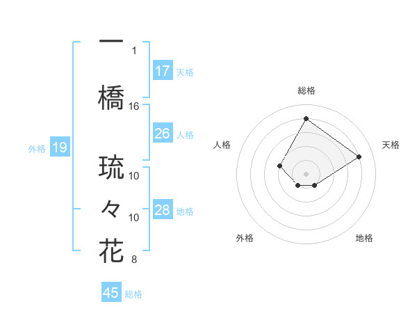 一橋 琉々花さんを姓名の画数から五運を鑑定