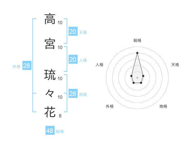 高宮 琉々花さんの総格は48画の4点!