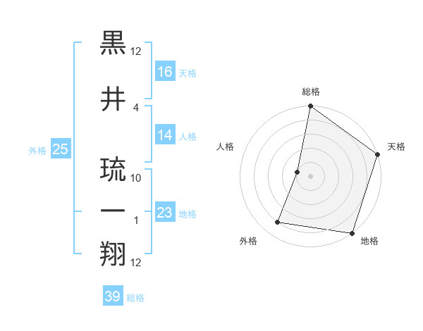 黒井 琉一翔さんを姓名の画数から五運を鑑定
