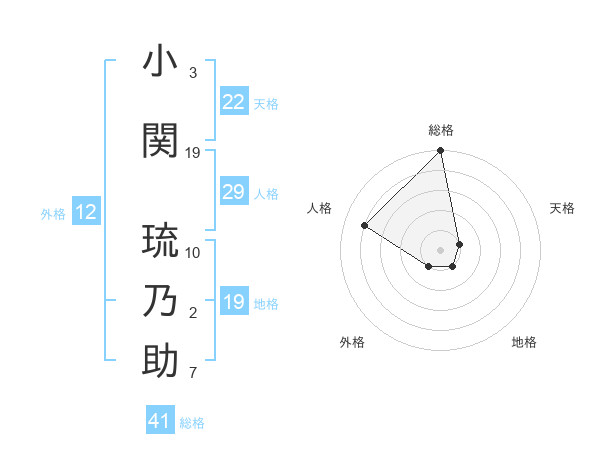 小関 琉乃助さんを姓名の画数から五運を鑑定